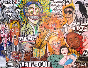 Kurtis Wells creates work that refuses to behave—pop-surreal canvases driven by humor, psychological drama, and cultural provocation. His self-taught practice merges street art sensibilities with neo-expressionist impulse, mixing caricature, pop culture references, and unflinching emotional honesty. High-contrast, saturated color—acidic yellows, reds, blues, greens—heightens the emotional intensity and visual noise. Working from sketches, Wells employs acrylics, oil bars, and mixed media to build pieces that range from monumental to postcard-sized. He paints in series rather than isolated works, allowing themes to develop across multiple canvases without self-censorship. This approach lets ideas evolve and complicate themselves—what begins as observation can shift into satire, confession, or raw psychological territory. Politics, music, everyday observation, and an overactive imagination fuel each canvas. Wells believes stories breathe life into art while over-explanation can suffocate it. His work operates in that tension—specific enough to hook viewers into a narrative, open enough to let them complete it on their own terms. The images trust audiences to bring their own experiences to the conversation, creating meaning through collaboration rather than prescription. For Wells, passion isn't a luxury—it's the relentless force behind decades of uninterrupted creation, the engine that keeps the cycle running. |